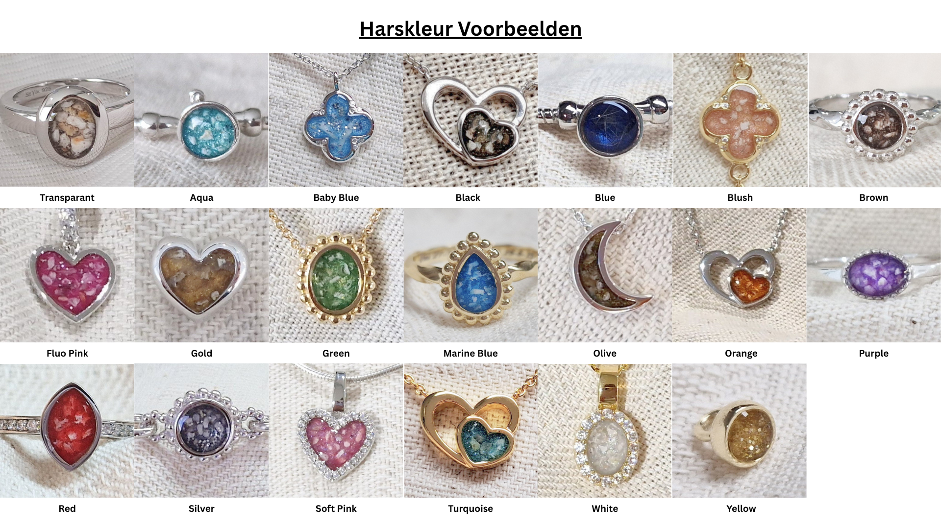 tijd in je leven. Onze sieraden kenmerken zich door het zichtbaar houden van as- of haarresten van je dierbaren. Wij streven ernaar