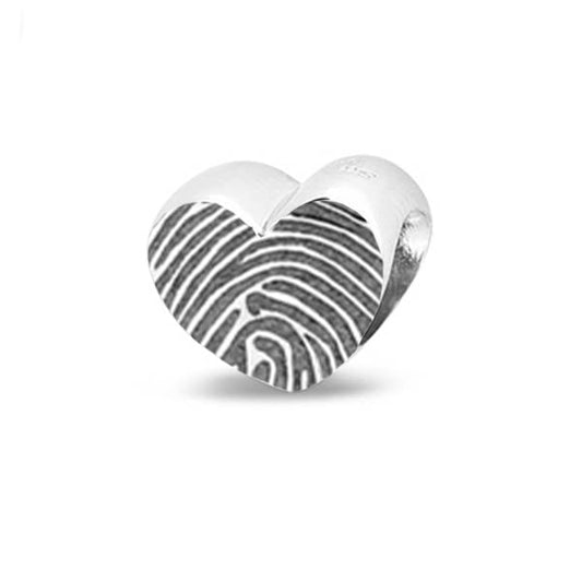 Gedenksieraden in de vorm van een bedel die je kunt personaliseren met een vingerafdruk. Goed te combineren met asbedels of gewone bedels.
